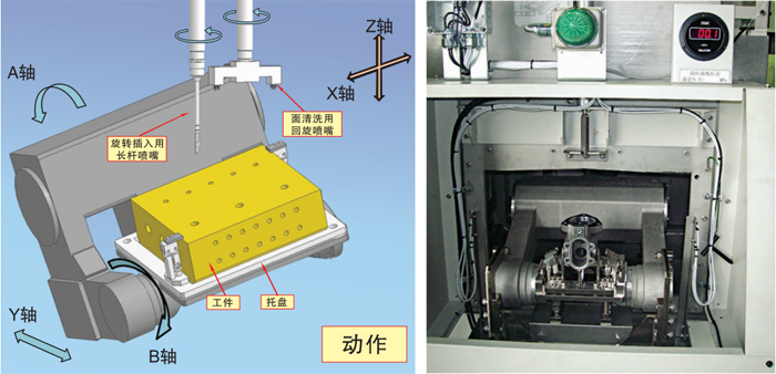 噴嘴:X、Z(2軸)NC+旋轉(zhuǎn) 工作臺:A、B、Y(3軸)NC |